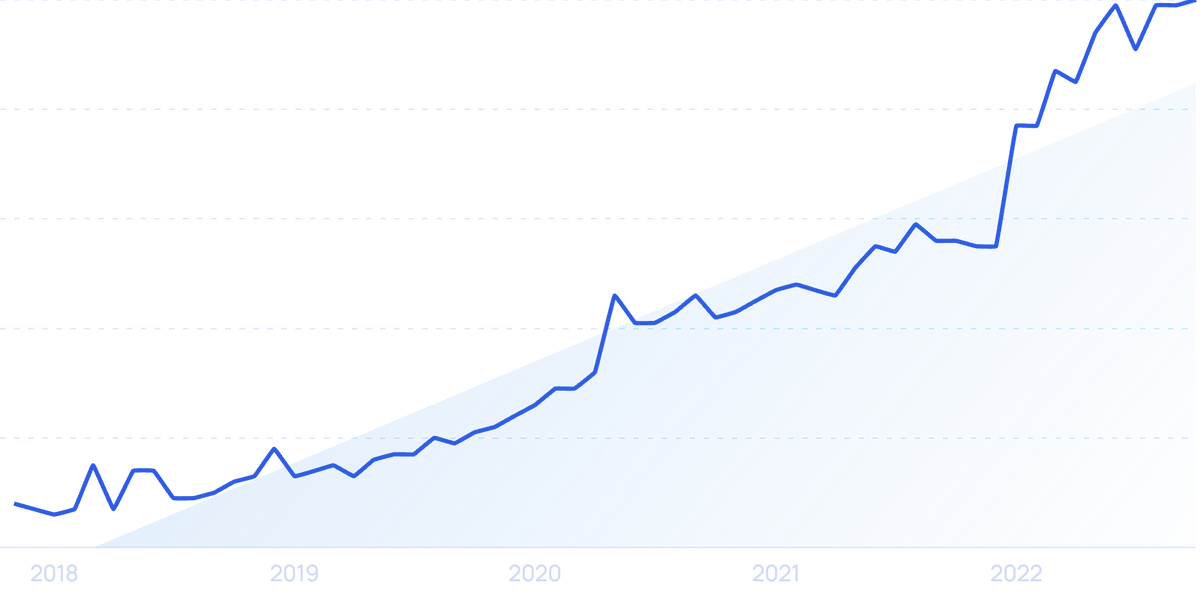 Search volume for “chatbot” is growing, up 219% in the past 5 years.Â